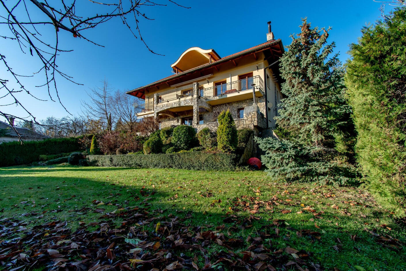 Spanning 350 m² over three floors, the property includes 4 bedrooms, 4 bathrooms, a kitchen, living and dining areas, a private sauna, and a dedicated workspace and reading room. The 1,000 m² garden features a campfire area and mature trees. There are two terraces, a balcony with city views, and a vaulted wine cellar.